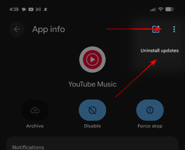 - Tap the three-dot menu at the top right and select Uninstall updates.