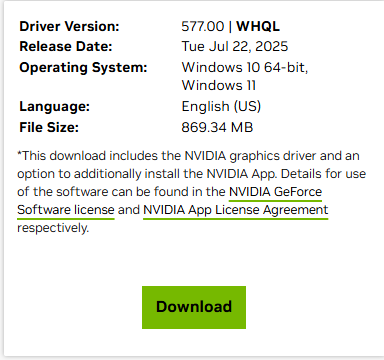 - Go to the official NVIDIA Driver Download page and download the drivers.