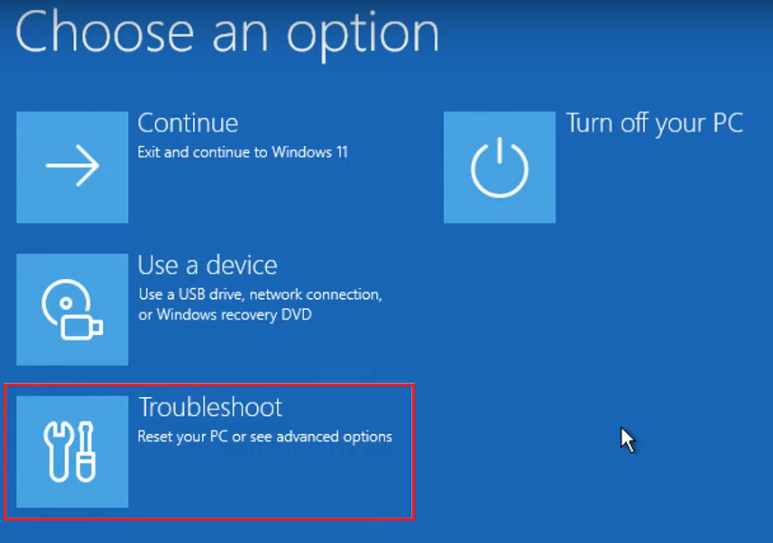 - Select Troubleshoot.