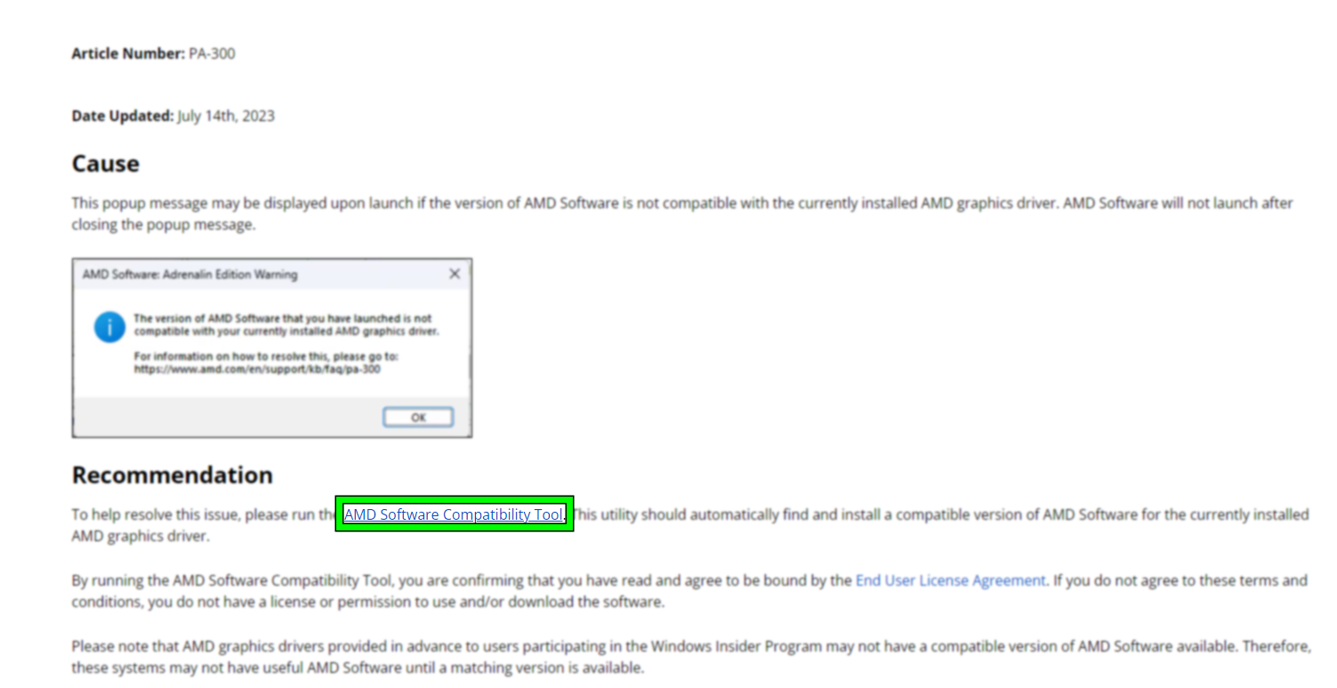 - Download the AMD Software Compatibility Tool.