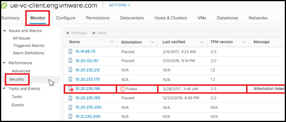 The “Host TPM Attestation Alarm” issue occurs because of the physical TPM. This could be due to many reasons; adding a new TPM chip, insufficient TPM hardware, incorrect UEFI settings, or vSphere/vCenter version.