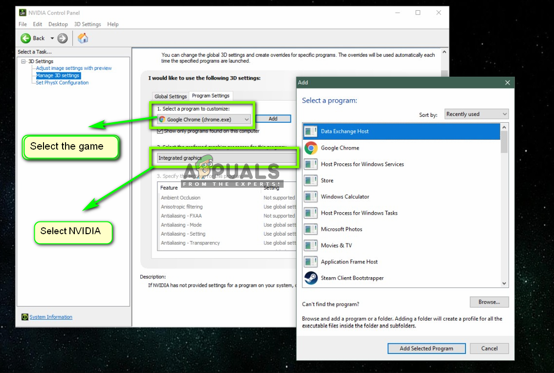 - Click on Manage 3D Settings then Program settings.
