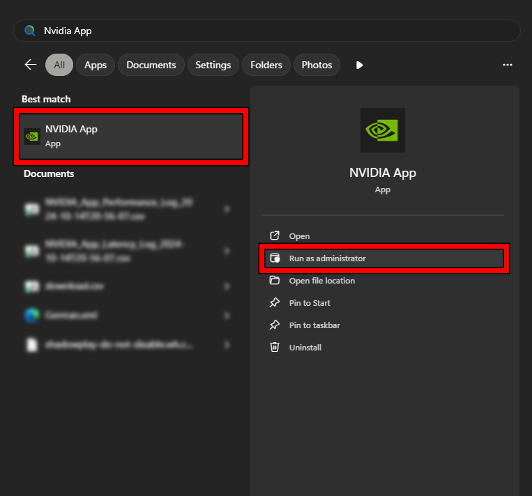 2. Run the NVIDIA App as Administrator