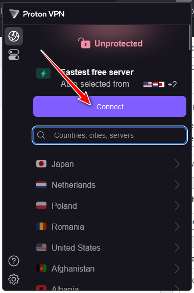 - Install a reliable VPN, such as Proton VPN.