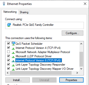 - Select Internet Protocol Version 6 (TCP/IPv6) and click Properties.