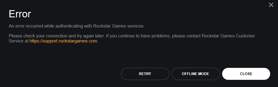 “An error occurred while authenticating with Rockstar Games services.”