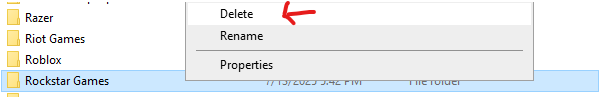 - Press Win + R, type %LocalAppData%, and delete the Rockstar Games folder.