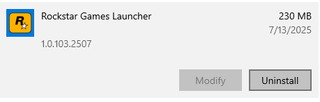- Uninstall the launcher via Settings > Apps > Rockstar Games Launcher > Uninstall.