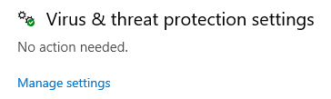 - Click Virus & threat protection > Manage settings under Virus & threat protection settings.