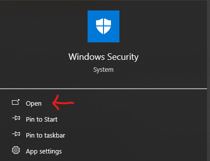 - Type Windows Security in the search bar and open it.