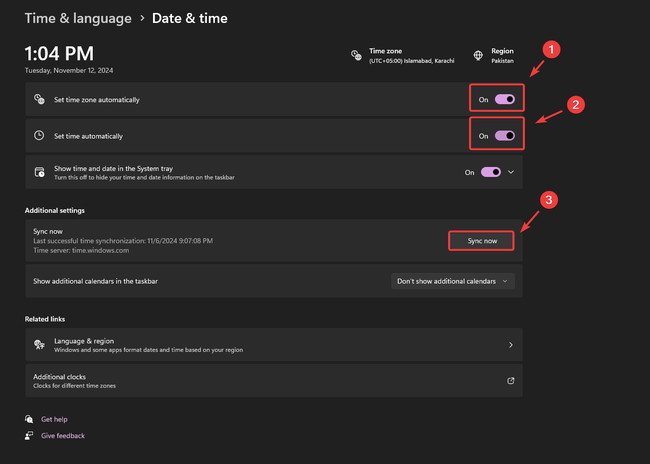 Incorrect time or region settings in Windows can create compatibility issues with both the game files and the servers. To avoid startup problems, make sure your date, time, and region are set correctly.