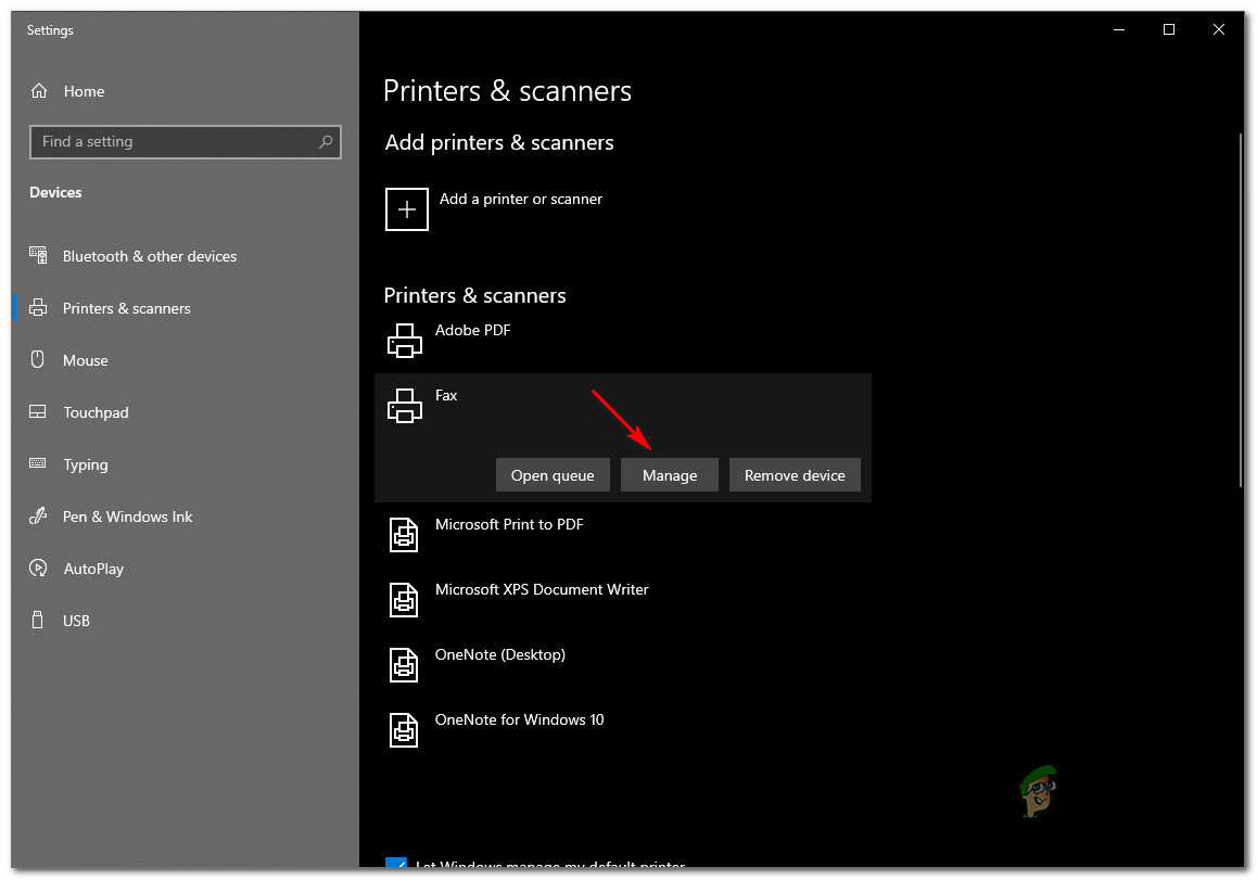Accessing the Print apps - Find and click the printer you want to share, then click Manage.