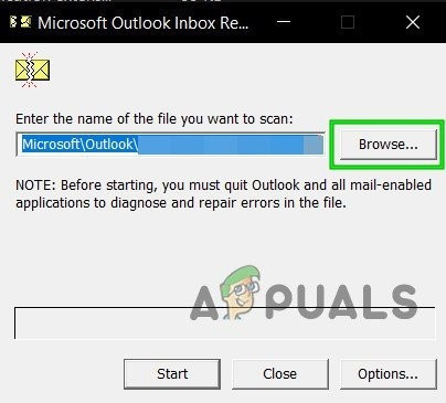 Run ScanPST as Administrator - Click the Browse button in the Inbox Repair Tool.