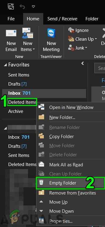 Since this error can be caused by storage issues, make sure that your Deleted Items folder isn’t using up unnecessary space.