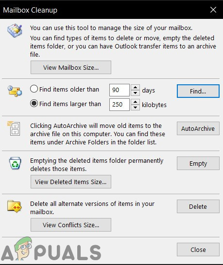 Manage Mailbox Cleanup - Relaunch Outlook to see if the problem is fixed.