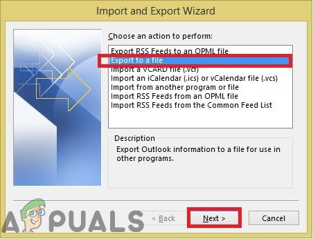 Import Export Outlook - In the wizard, choose Export a File and click Next.