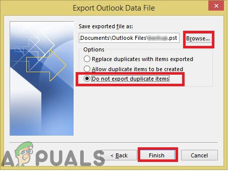 Select Folders to Export - Browse for a save location, select not to export duplicates, and click Finish.