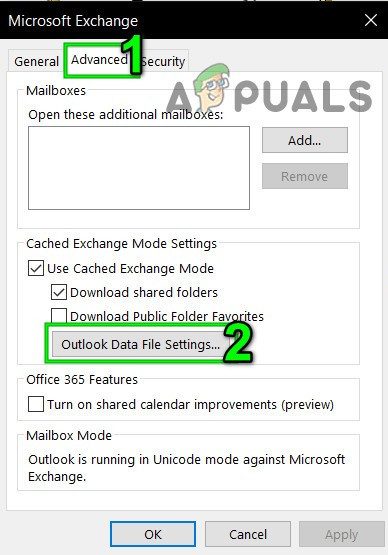 Settings of PST File - Go to the Advanced tab and click Outlook Data File Settings.