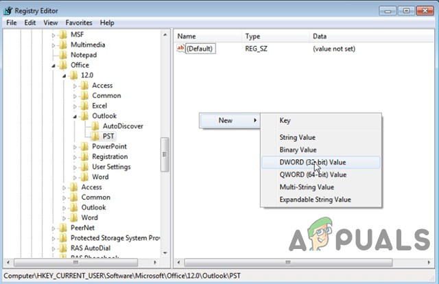 HKEY_CURRENT_USER\Software\Microsoft\Office\12.0\Outlook\PST