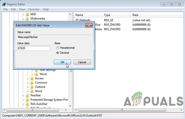 - For Outlook 2003 & 2007, enter a value higher than 20,480 (20GB).