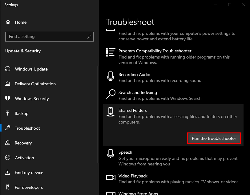 - If the error is still there, and you’re seeing it with a shared folder on Windows 10, try the steps below to run the Shared Folders troubleshooter.
