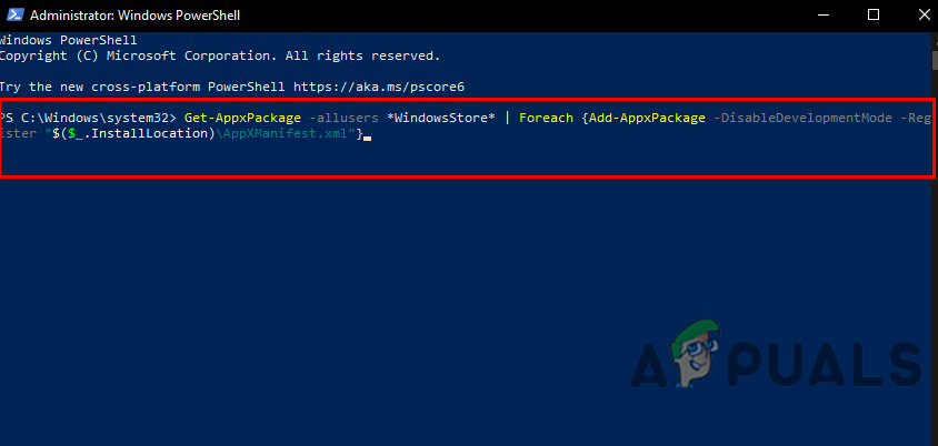 - Open PowerShell again and enter this command to reinstall Microsoft Store: