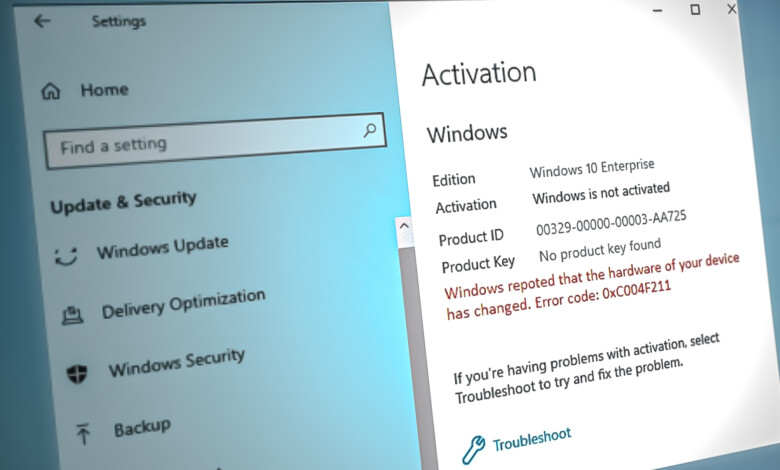 Windows displays activation error code 0xC004F211 after a hardware change causes the system to lose its digital license status. This error indicates that the device’s hardware ID no longer matches the one stored in Microsoft’s activation servers.