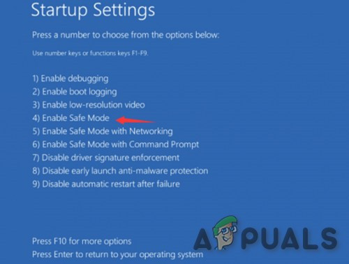 Windows 10 Advanced Options - On the Startup Settings screen, your computer will restart once more. When the Startup Settings menu appears, press the F4 or 4 key to boot into Safe Mode.