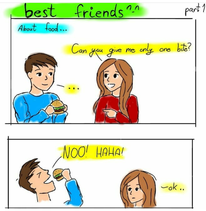 This meme is for your foodie friend who can never share their favourite food with you. They will pretend to consider it for a moment before gobbling it down while laughing the whole time.