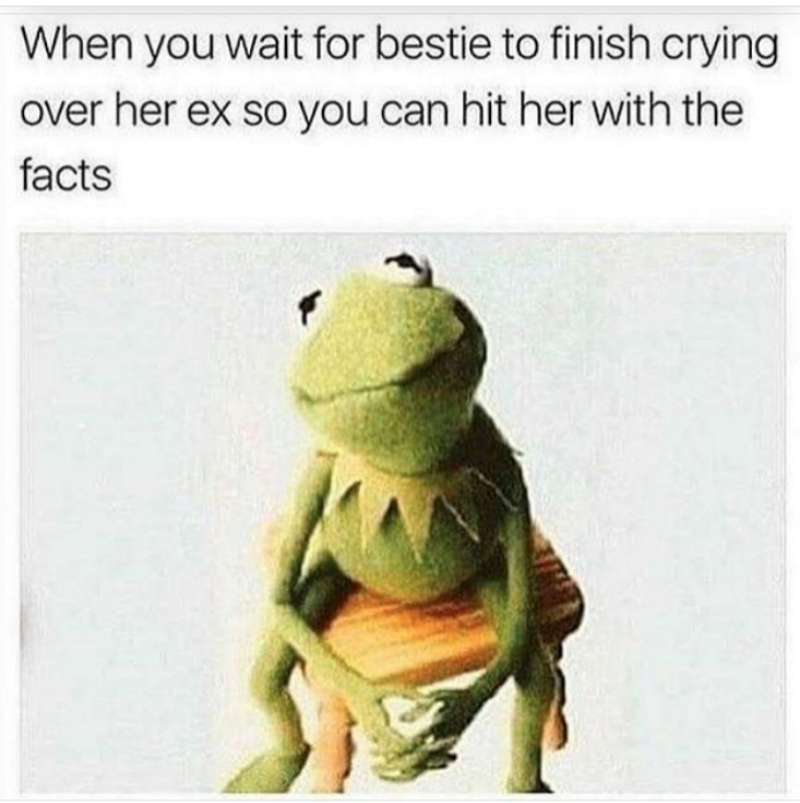 The ex is always a sore spot in any best friends’ relationship. They will always hurt your friend and what’s worse you always see it coming and warn the friend only for them to ignore you.