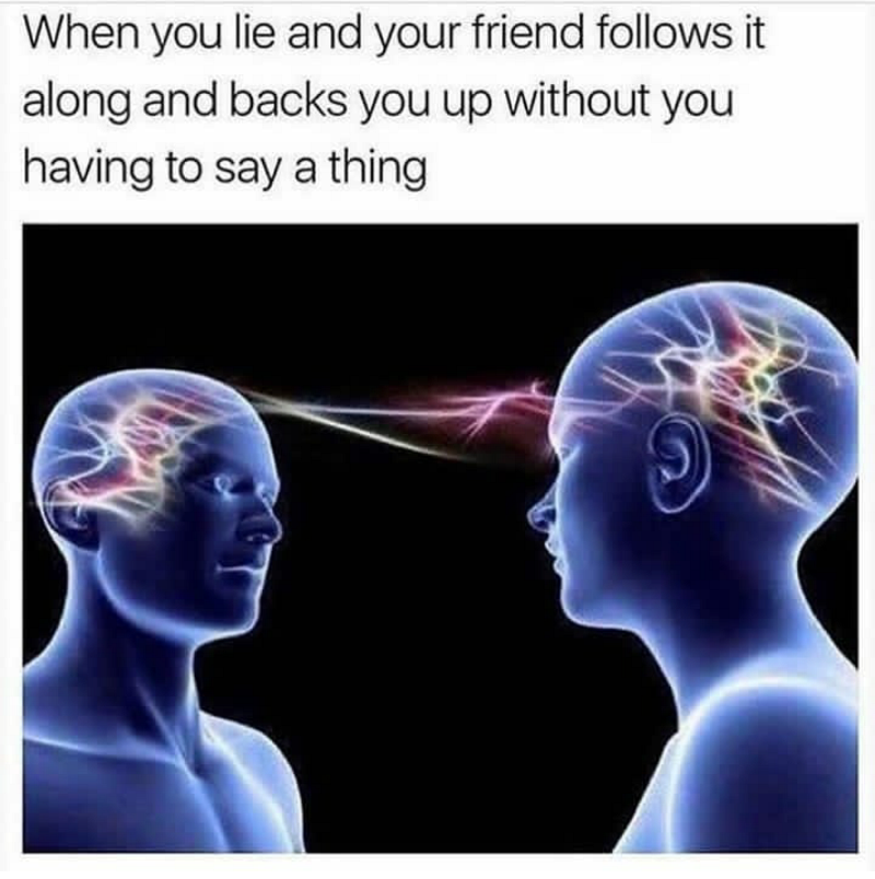 Sometimes you come up with fabricated stories to try and impress people and your best friend will back you up so naturally that the story becomes credible.