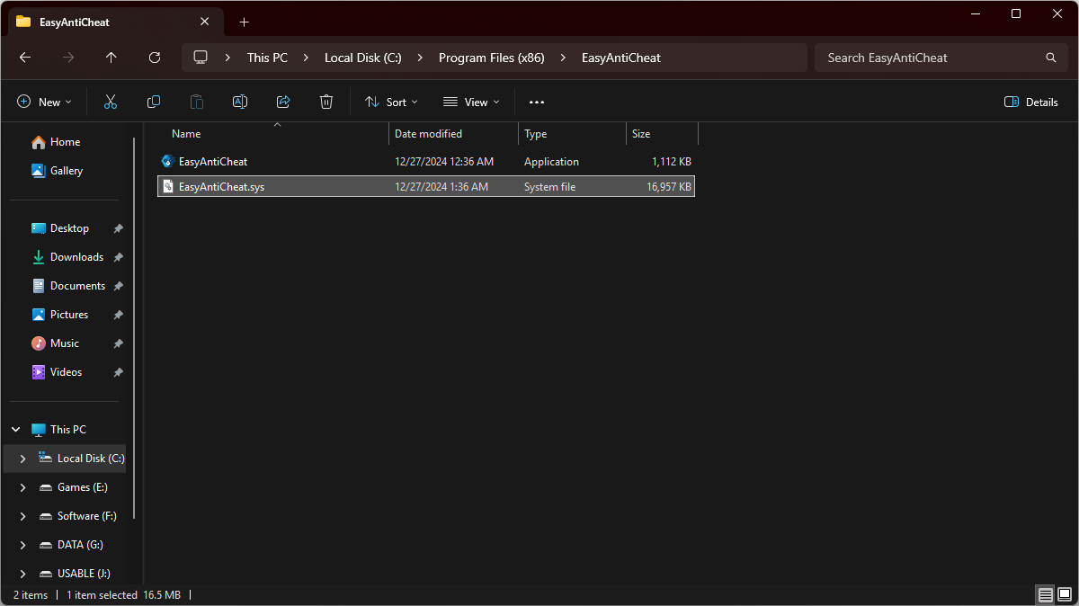 - Find the EasyAntiCheat.sys file, then select it and press Shift + Delete to permanently remove it.