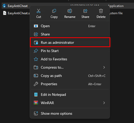 - Open the folder, locate EasyAntiCheat_Setup.exe, right-click it, and select Run as Administrator.