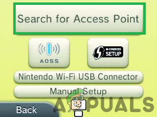 Clicking on the “Search for Access Point” option - Select the name of your wireless network and tap “OK.”