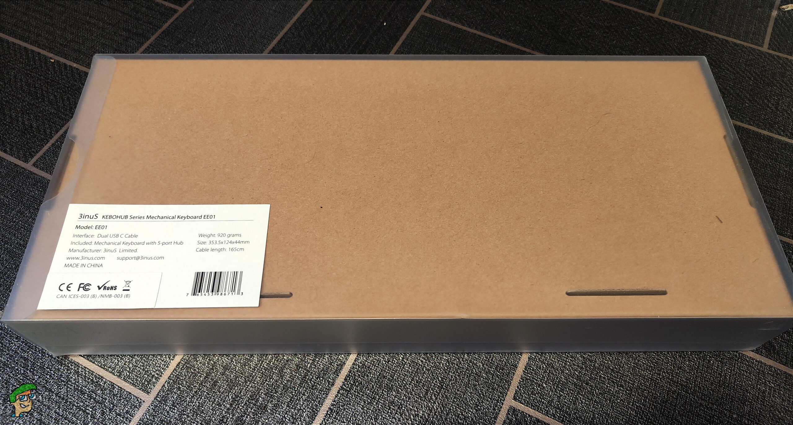 On the rear of the box, we have the sticker with the keyboard’s basic spec such as dimensions and weight, along with the barcode and serial numbers.