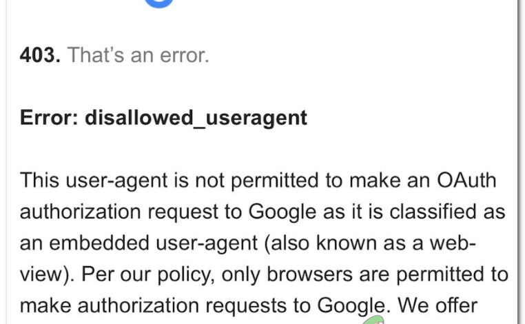 403 Google ‘Error: Disallowed_Useragent’ on Android and iOS