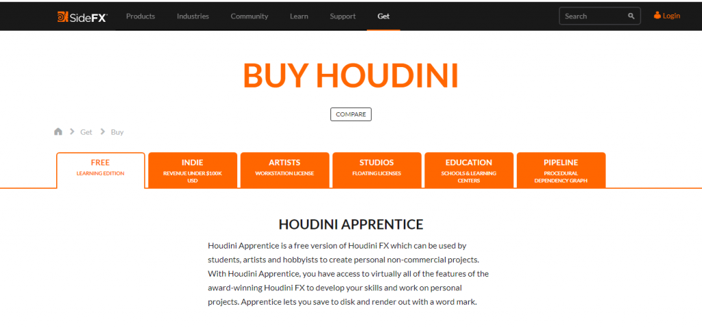 - Pipeline Edition- You will need to contact the Sales team of Houdini to find out the price of this edition.