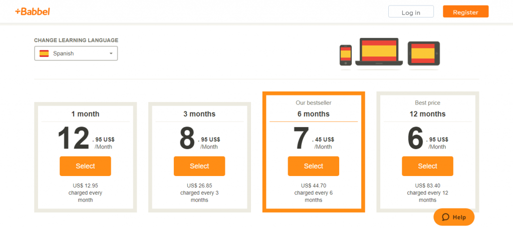 Babbel offers us the following four pricing plans for learning Spanish: