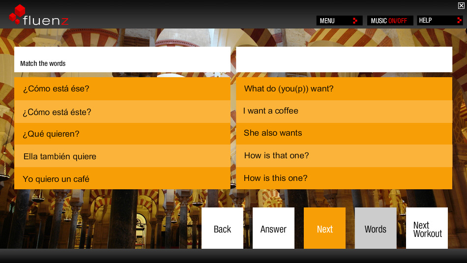 The Courses module is designed to teach you all the rules and regulations of the Spanish language. The Exercises module is there to let you practice your Spanish skills in a professional manner whereas the Games module provides you with a fun-filled environment for improving your Spanish skills while playing different games. Rosetta Stone is efficient enough to keep a track of your language learning progress by periodically Saving your Scores. It also intentionally repeats some of the most important lessons time and again in order to make you learn them by heart.