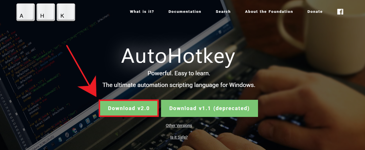 - Visit the official AutoHotkey website and download the ahk-install.exe file.