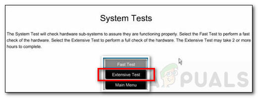 - On the diagnostics main menu, select System Tests and then choose Extensive Test.