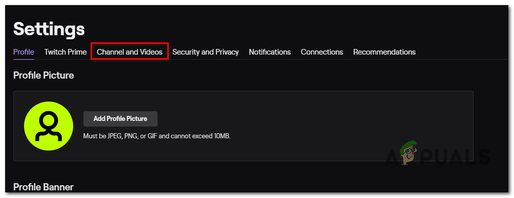 Accessing the Settings menu of Twitch - Inside the Settings menu, click the Channel and Video tab in the horizontal menu.