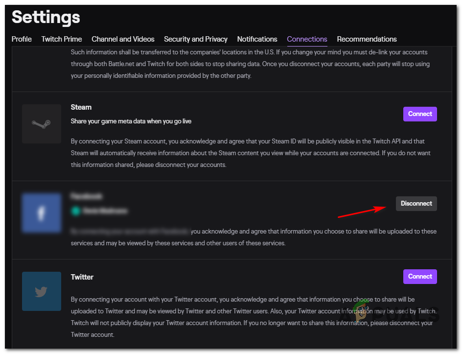 Disconnect the Xbox One account integrated with Twitch - After disconnecting, return to your Xbox One and sign in to the Twitch app again. Check if the error has been resolved.