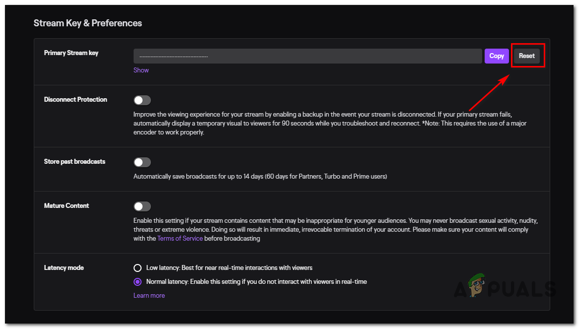 If this scenario matches your experience, you can resolve the error by resetting your Stream key through the official Twitch website. After completing this process, sign back into the Twitch app on your Xbox One to see if the problem has been fixed.