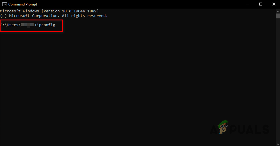 Entering ipconfig command in Command Prompt - Scroll to the Ethernet Adapter section and note your Default Gateway.