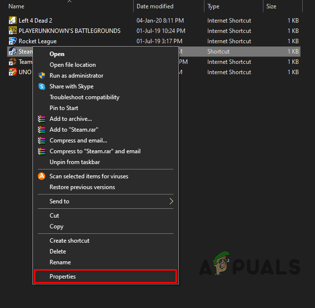 - In the new window, right-click Steam.exe and select Properties.