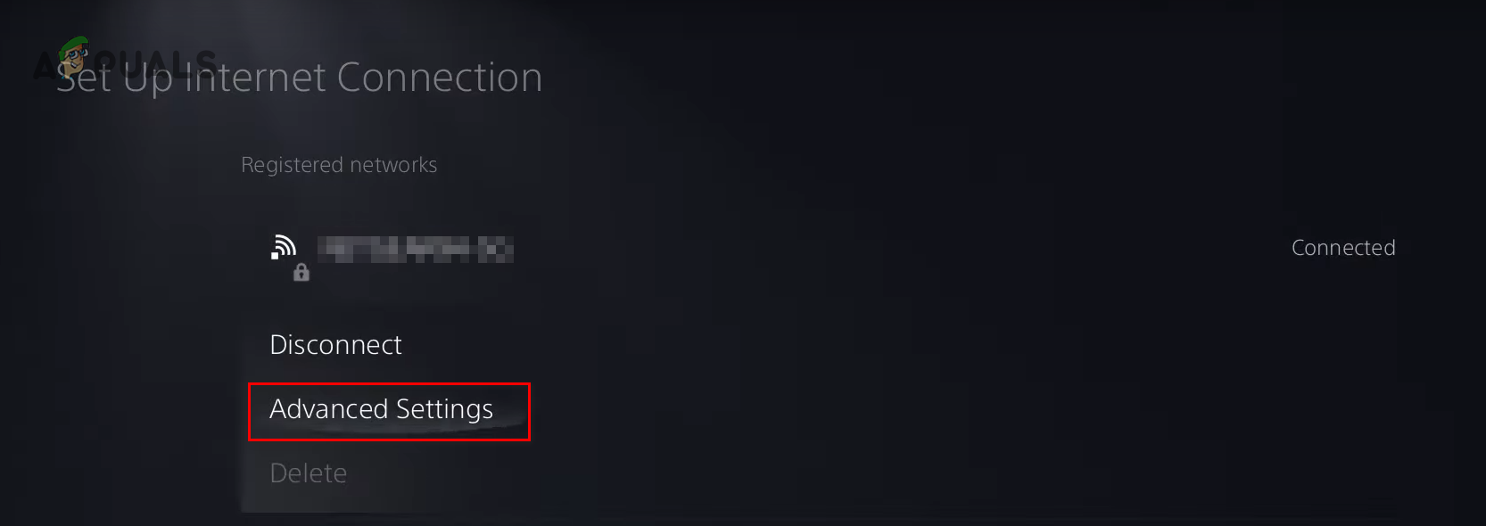 Selecting Set Up Internet Connection - Select your active network and click Advanced Settings.