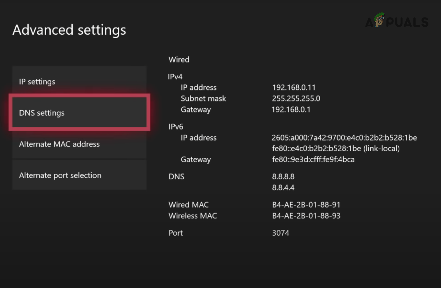 Opening Xbox Network Settings - Go to Advanced Settings > DNS Settings > Manual.