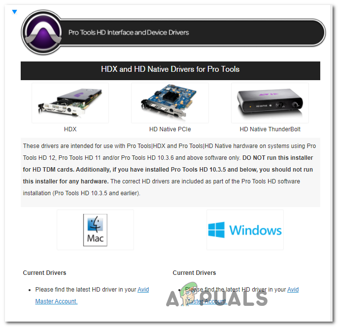 - Visit the official download page of Avid and expand the menu for Pro Tools HD Interface and Device Drivers.