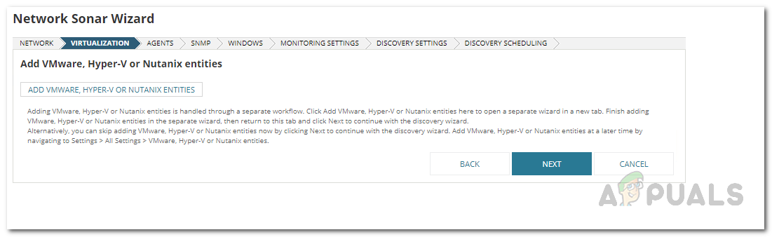 Agents Settings - Any virtual servers or hosts can be discovered on the Virtualization tab. Provide the required credentials to do so. Then, click Next.